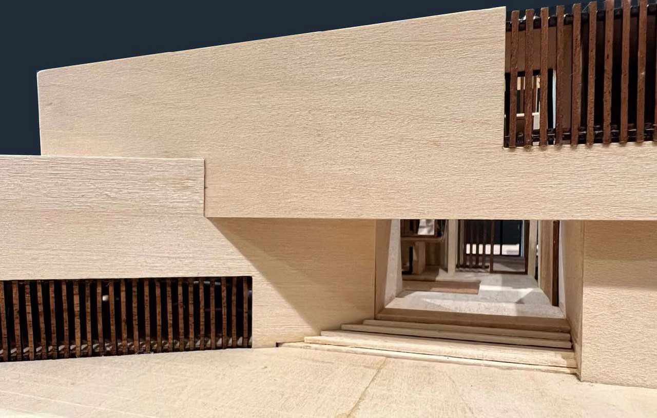 Erosion does not translate in the same shape or texture in nature, regardless of the material it is shaping. The use of a main natural material throughout (white travertine), with different shapes and textures, reflects this concept. Texture expresses something about the quality of the material, and it gives a particular quality to light. Sometimes, the erosion is such that it breaks the skin leaving a physical connection between interior and the exterior, this is reflected in the form of louvers, which are used to connect to the exterior, but at the same time give privacy to the spaces behind.