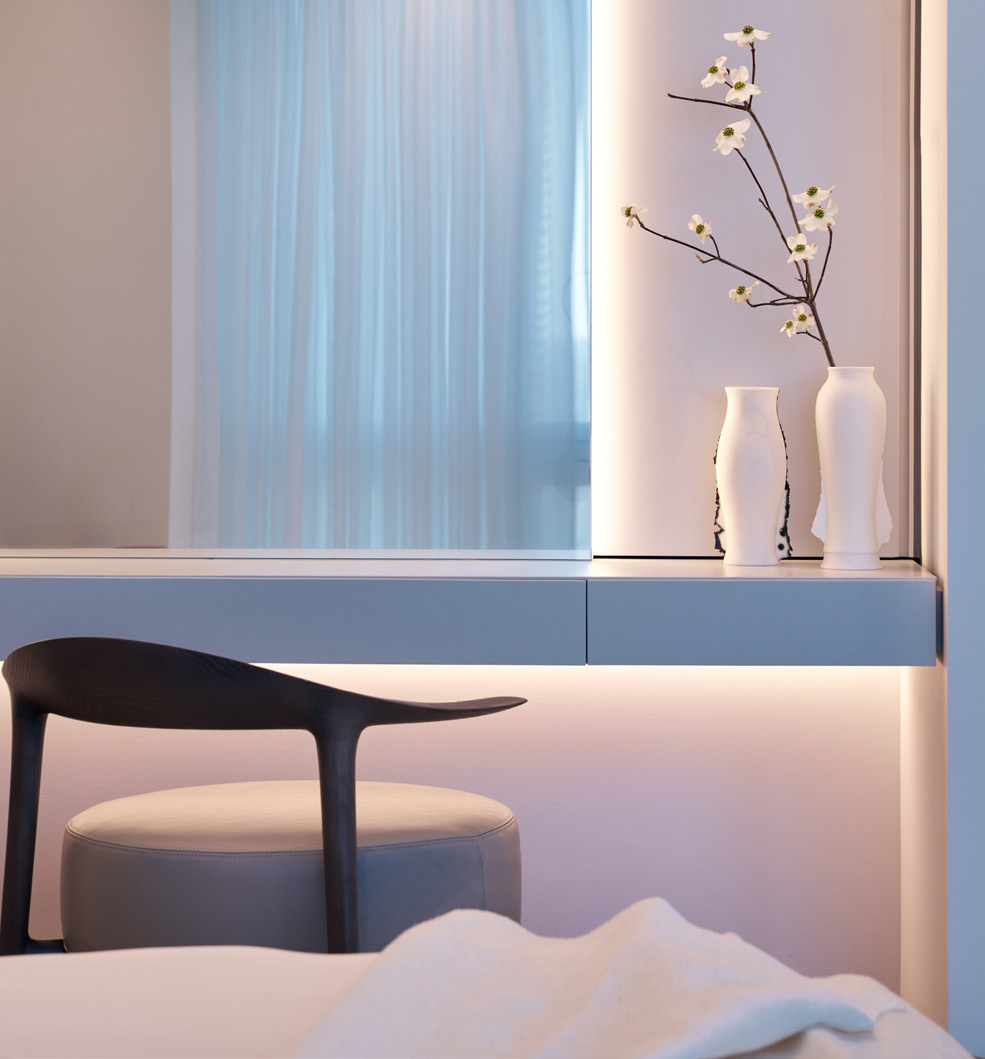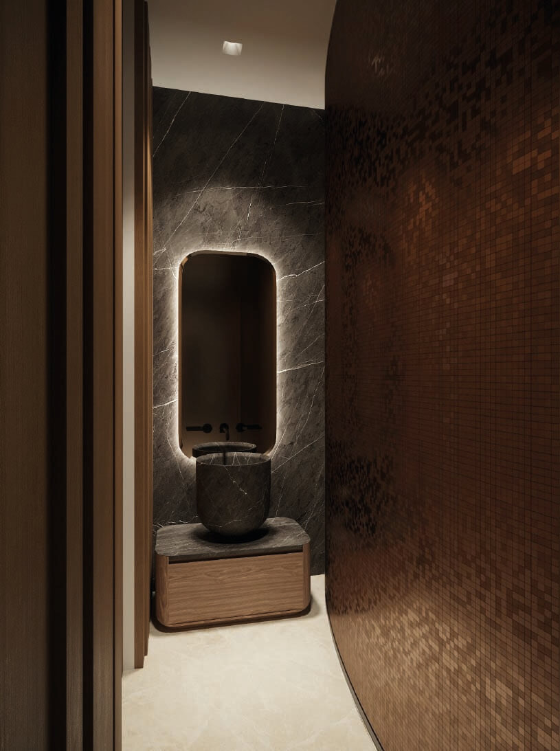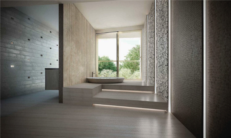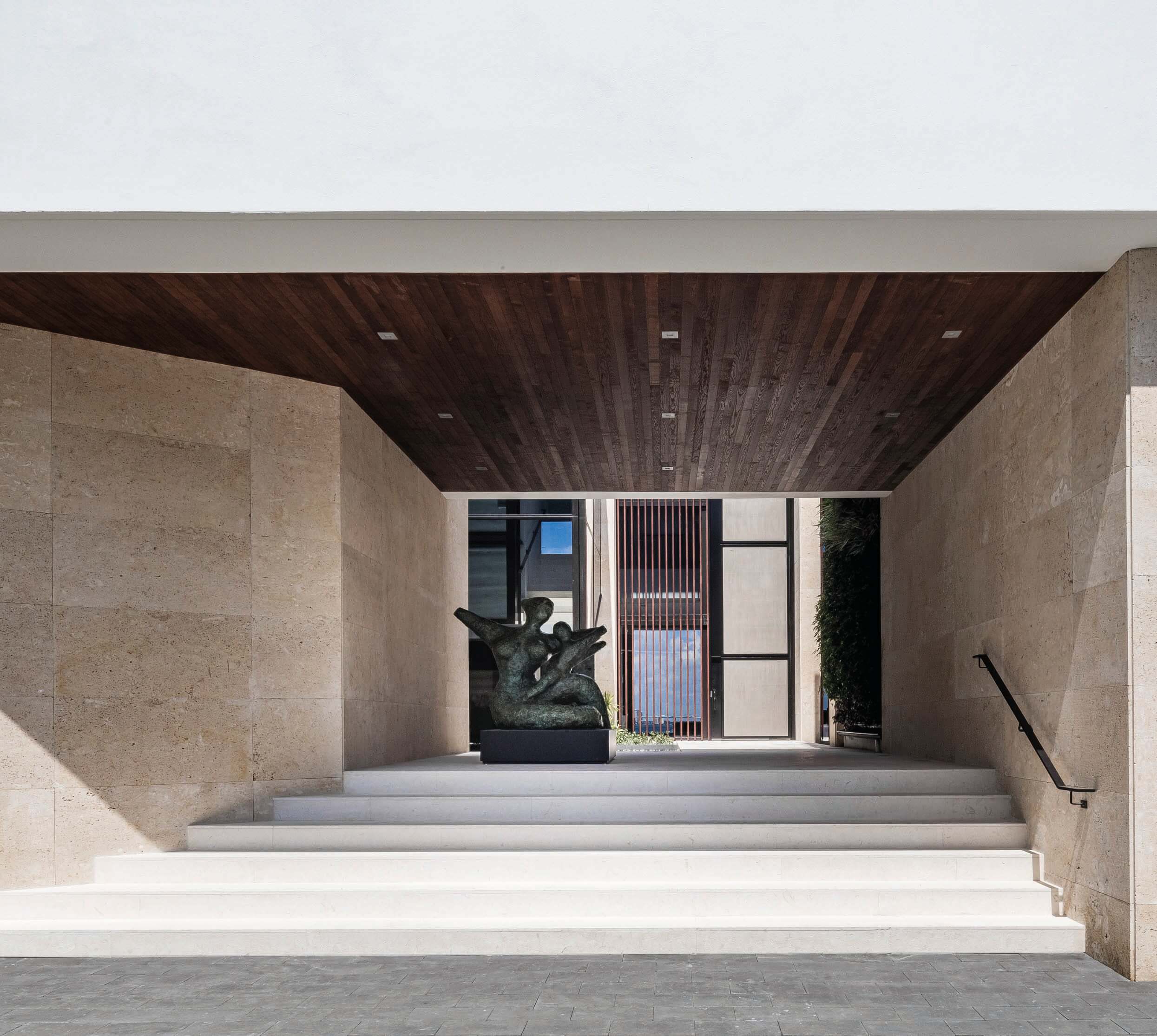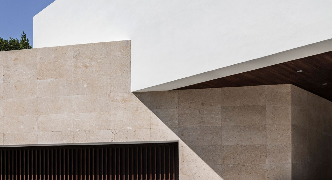 Erosion does not translate in the same shape or texture in nature, regardless of the material it is shaping. The use of a main natural material throughout (white travertine), with different shapes and textures, reflects this concept. Texture expresses something about the quality of the material, and it gives a particular quality to light. Sometimes, the erosion is such that it breaks the skin leaving a physical connection between interior and the exterior, this is reflected in the form of louvers, which are used to connect to the exterior, but at the same time give privacy to the spaces behind.