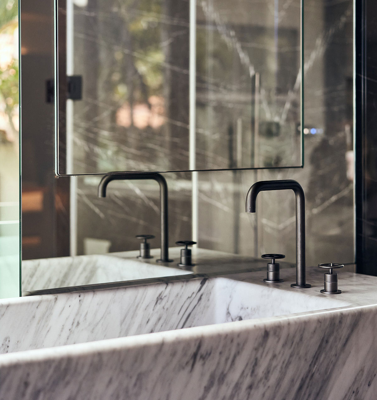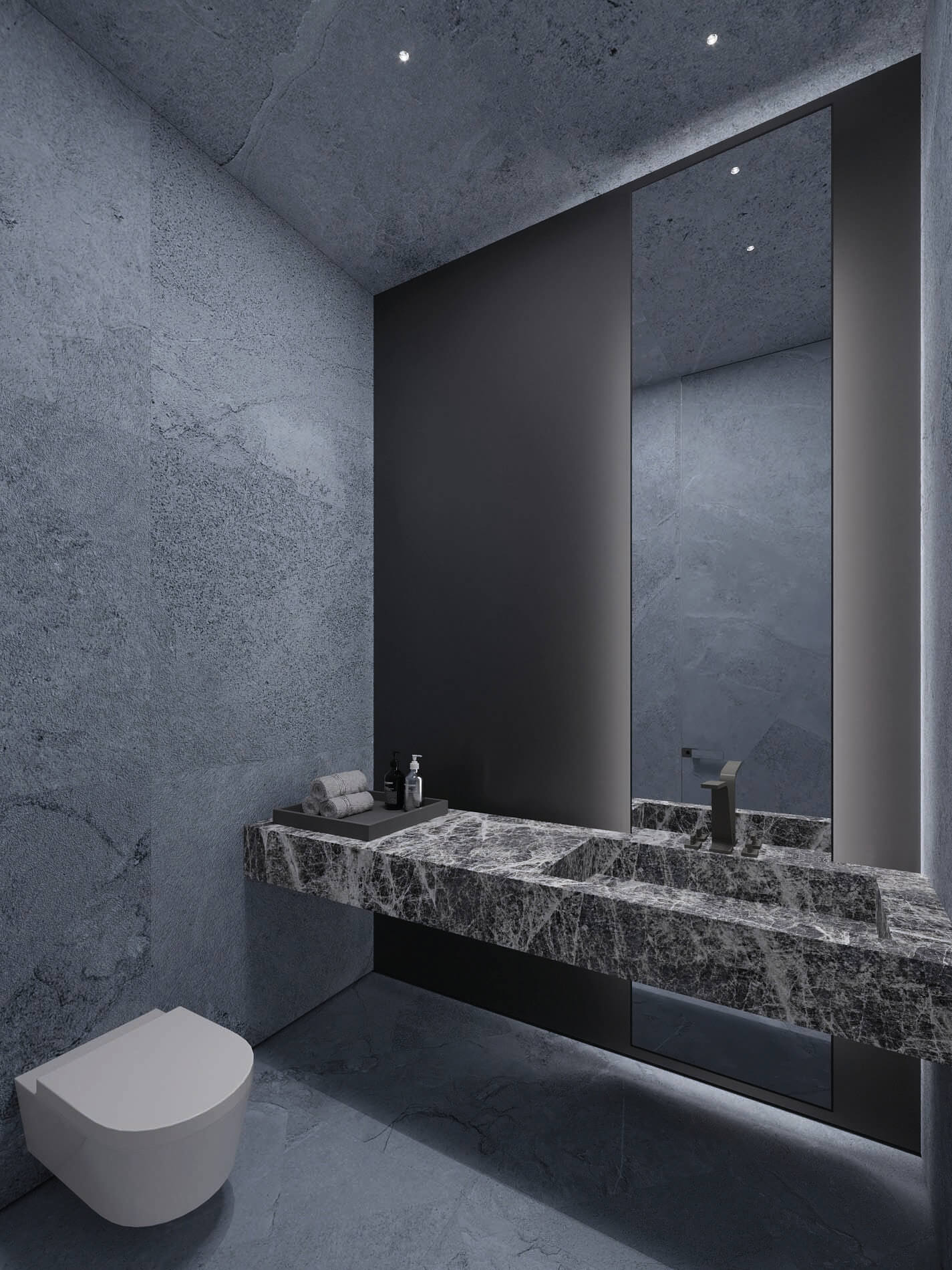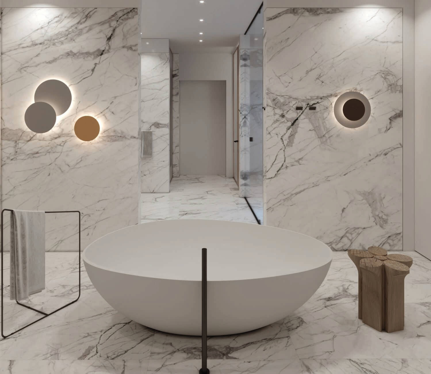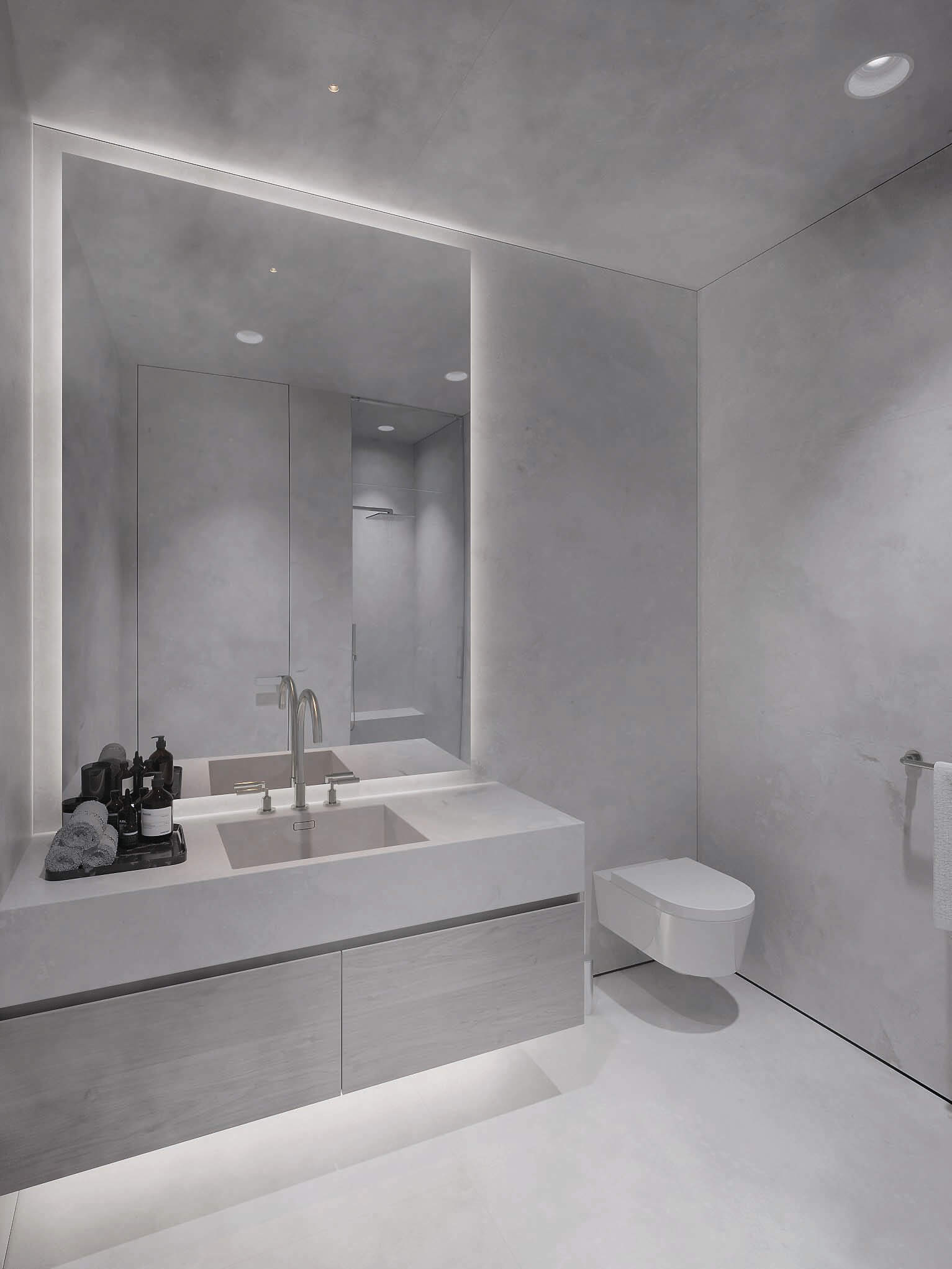 Erosion does not translate in the same shape or texture in nature, regardless of the material it is shaping. The use of a main natural material throughout (white travertine), with different shapes and textures, reflects this concept. Texture expresses something about the quality of the material, and it gives a particular quality to light. Sometimes, the erosion is such that it breaks the skin leaving a physical connection between interior and the exterior, this is reflected in the form of louvers, which are used to connect to the exterior, but at the same time give privacy to the spaces behind.