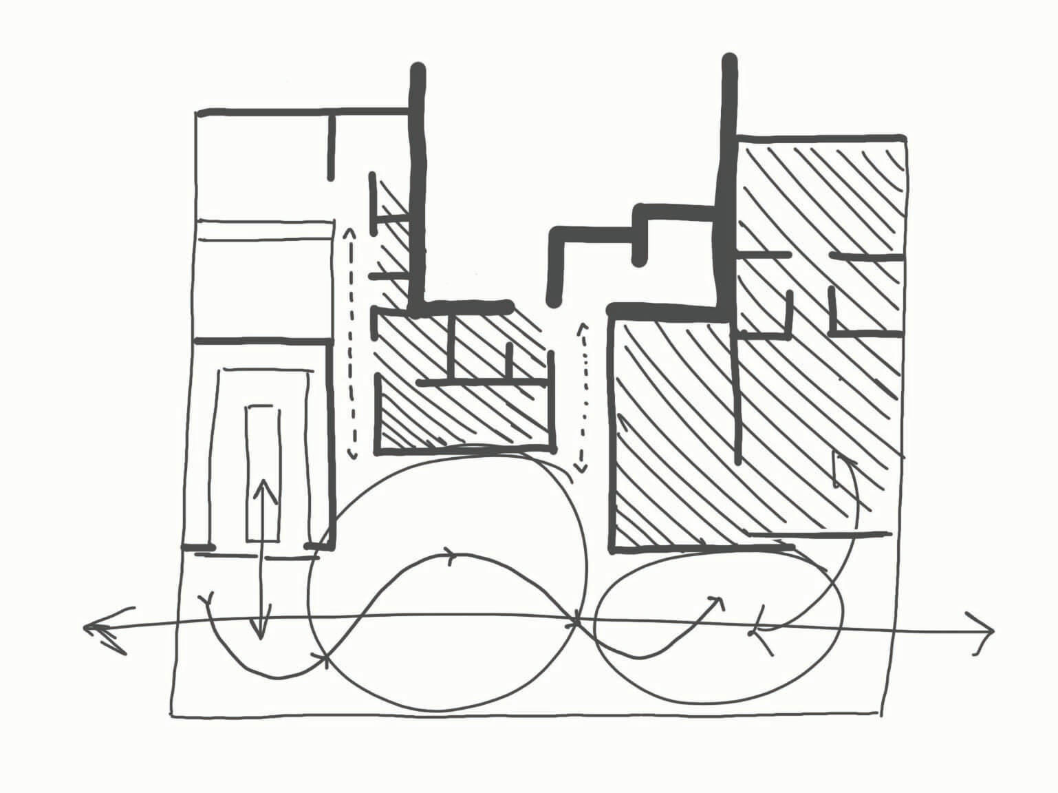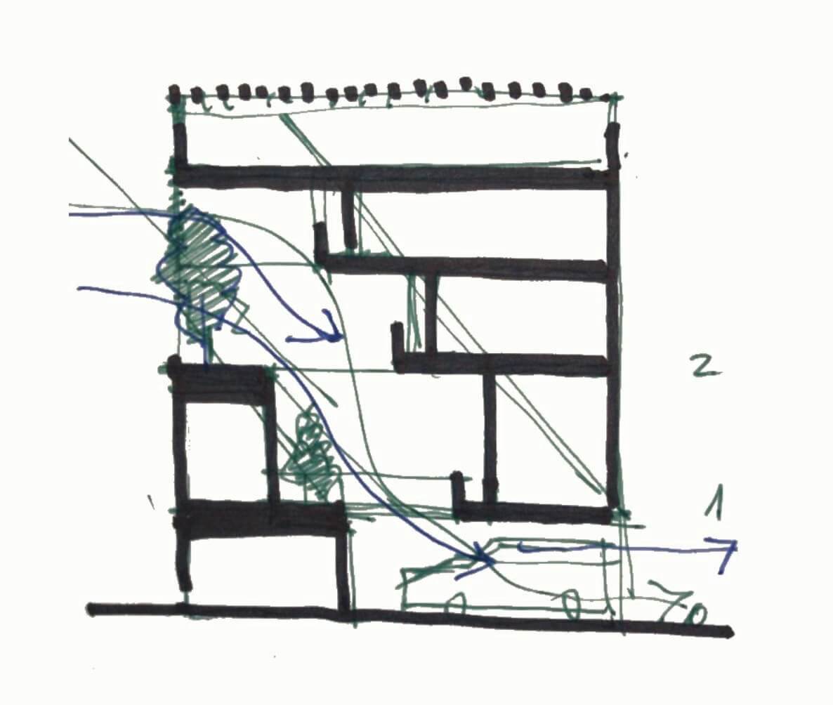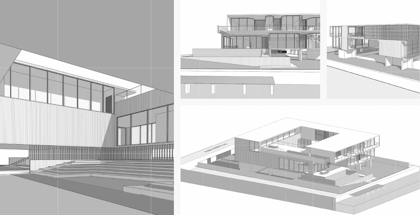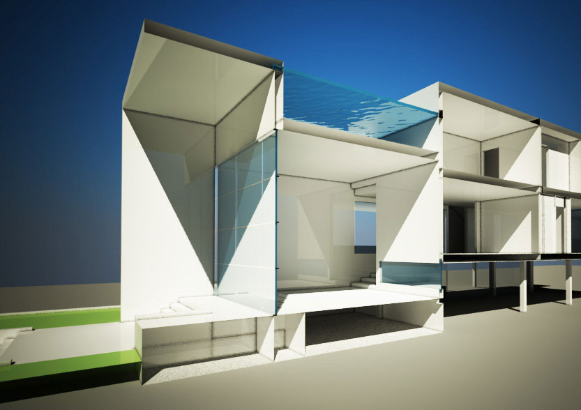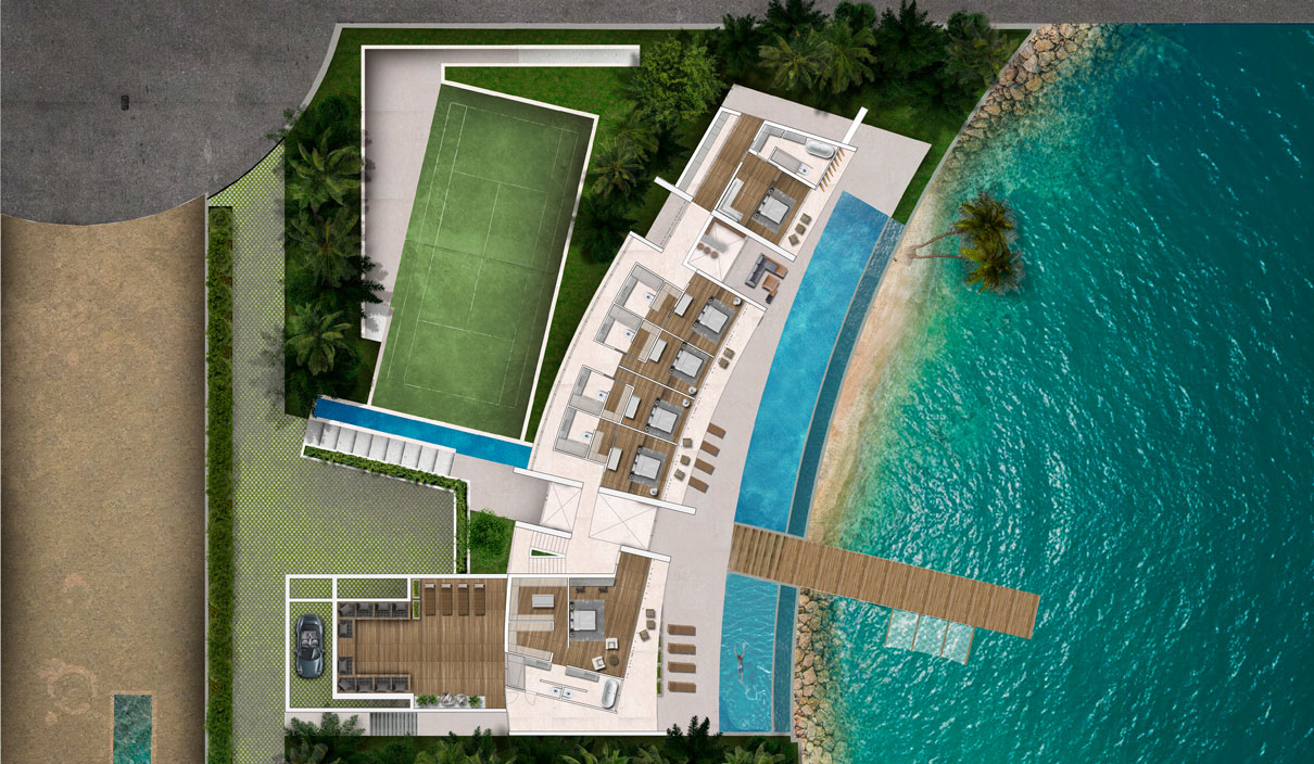 The architectural concept parts from a central courtyard, as the void in architecture which belongs both to the natural world and the un-natural, exterior, and interior, nature and architecture, around which the building develops. As the first approach of connection with its surrounds, and taking advantage of what may seem code limitations, the building is lifted from the ground to get a relation from the entrance, through the courtyard to the water. This connection is not only visual, but also physical. It is important to feel this relation as you experience the building.