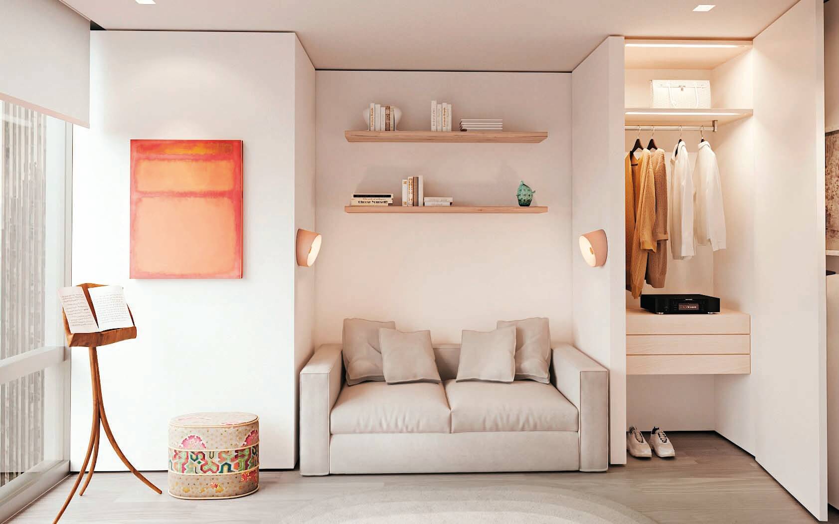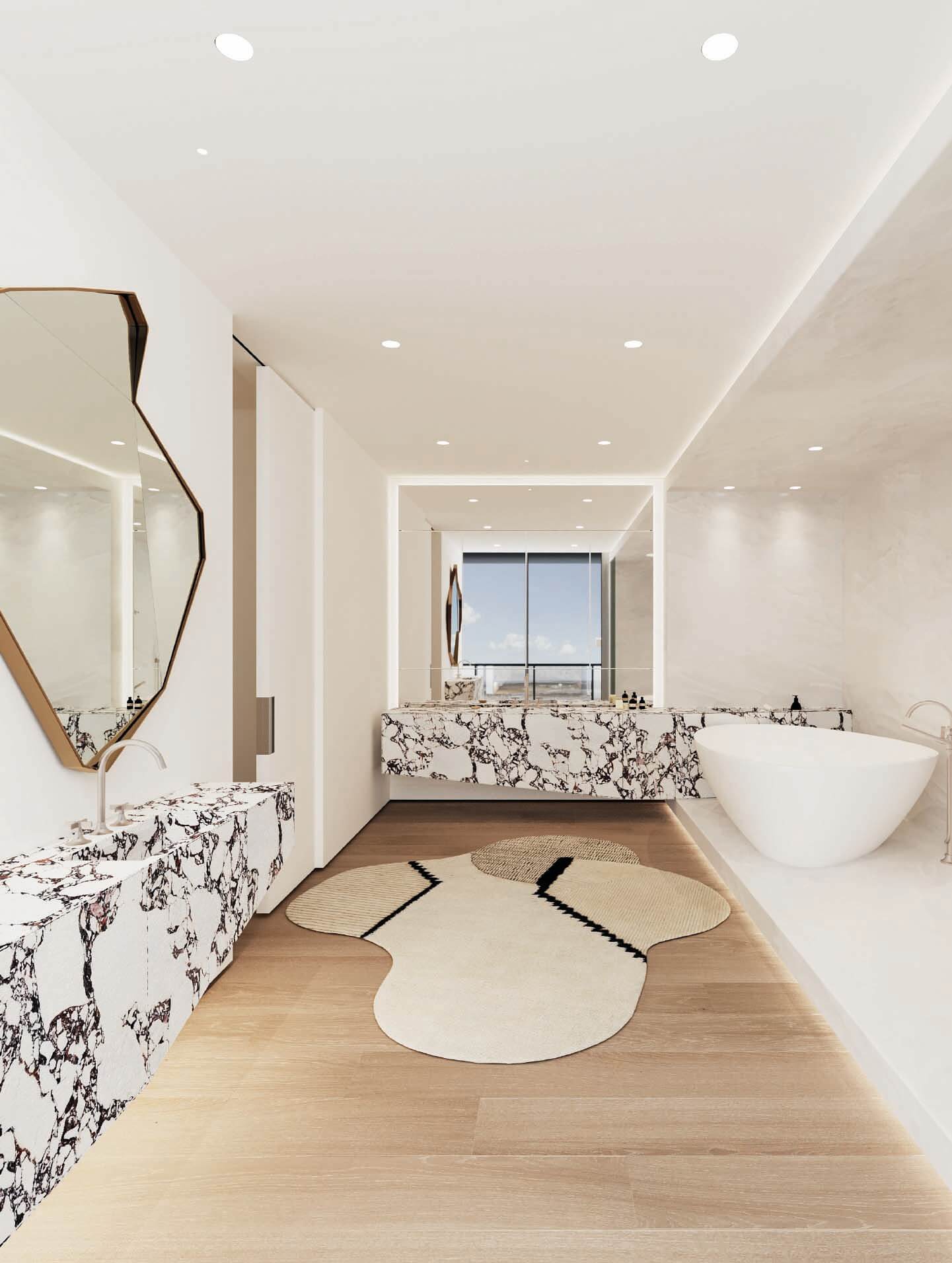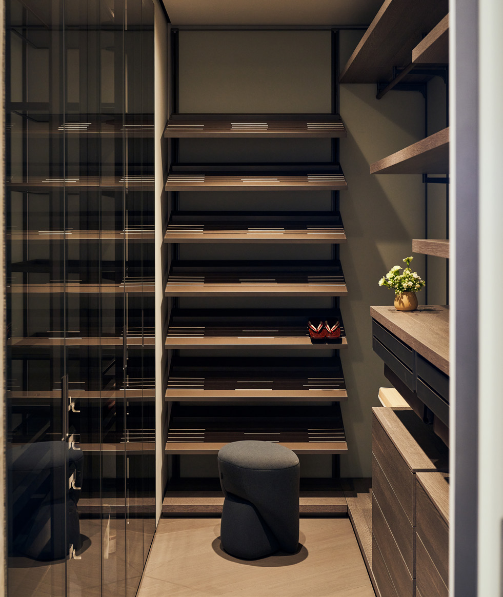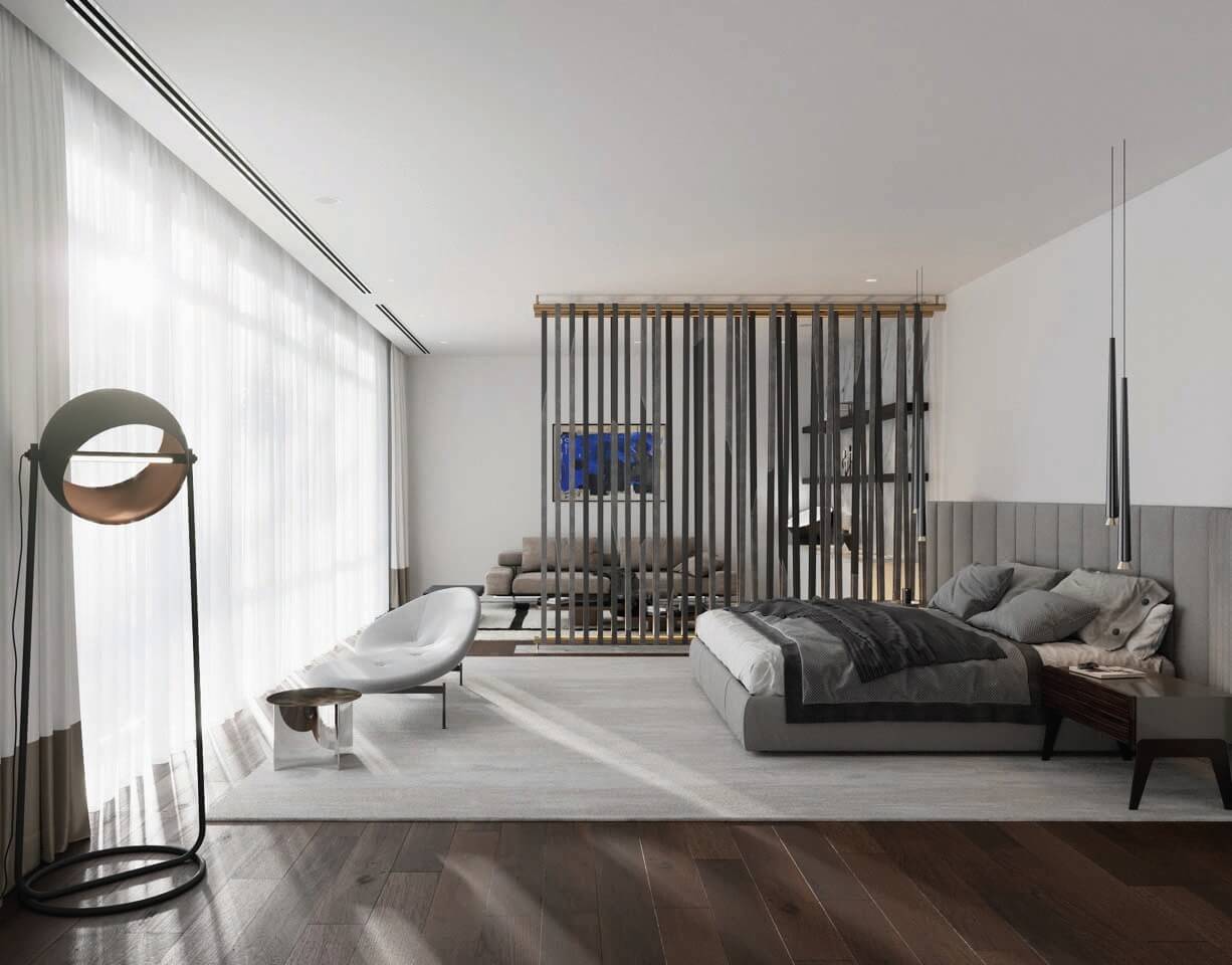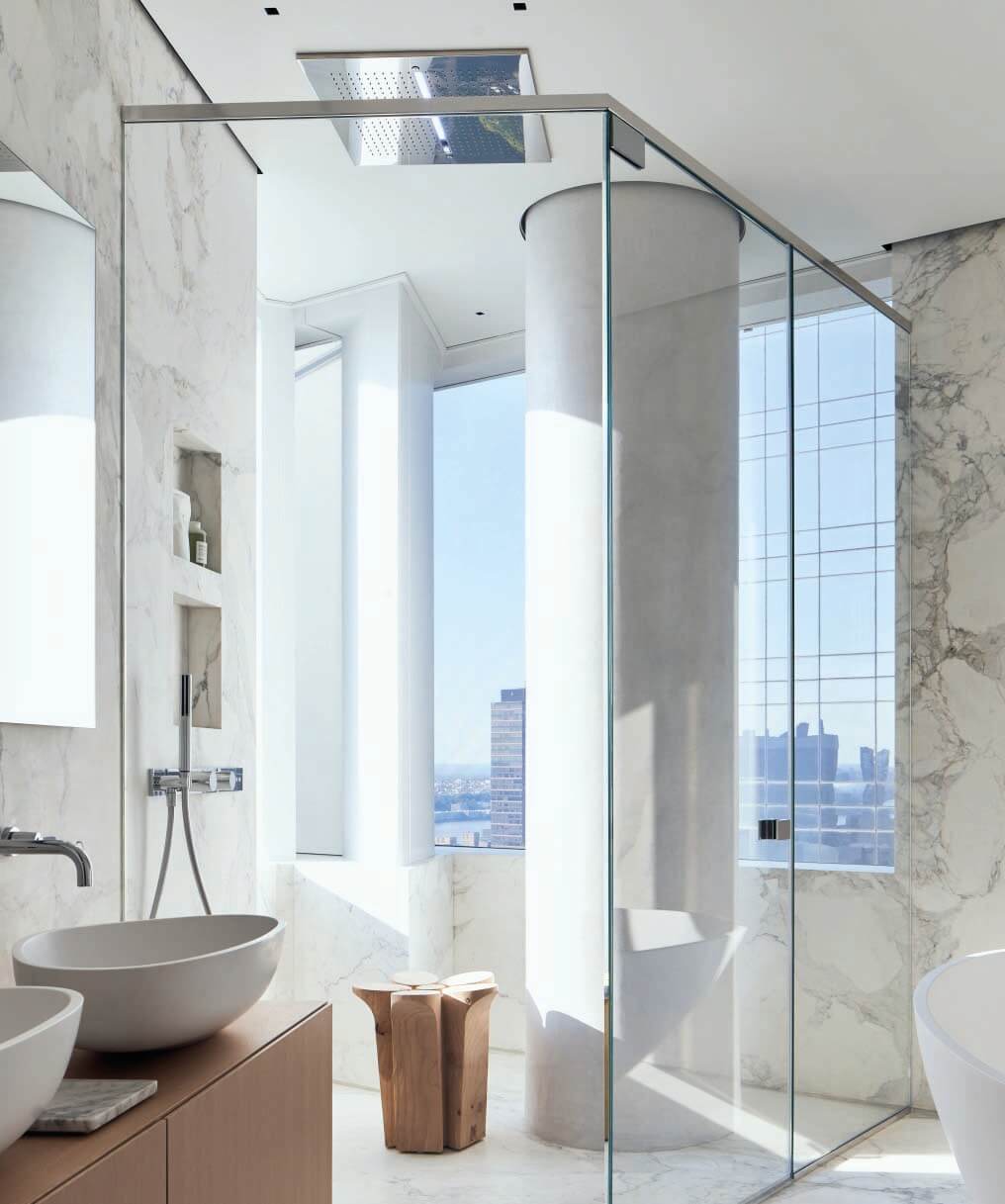 It also serves a practical function by creating a separation between the north and south units’ balconies without the use of unsightly glass partitions.