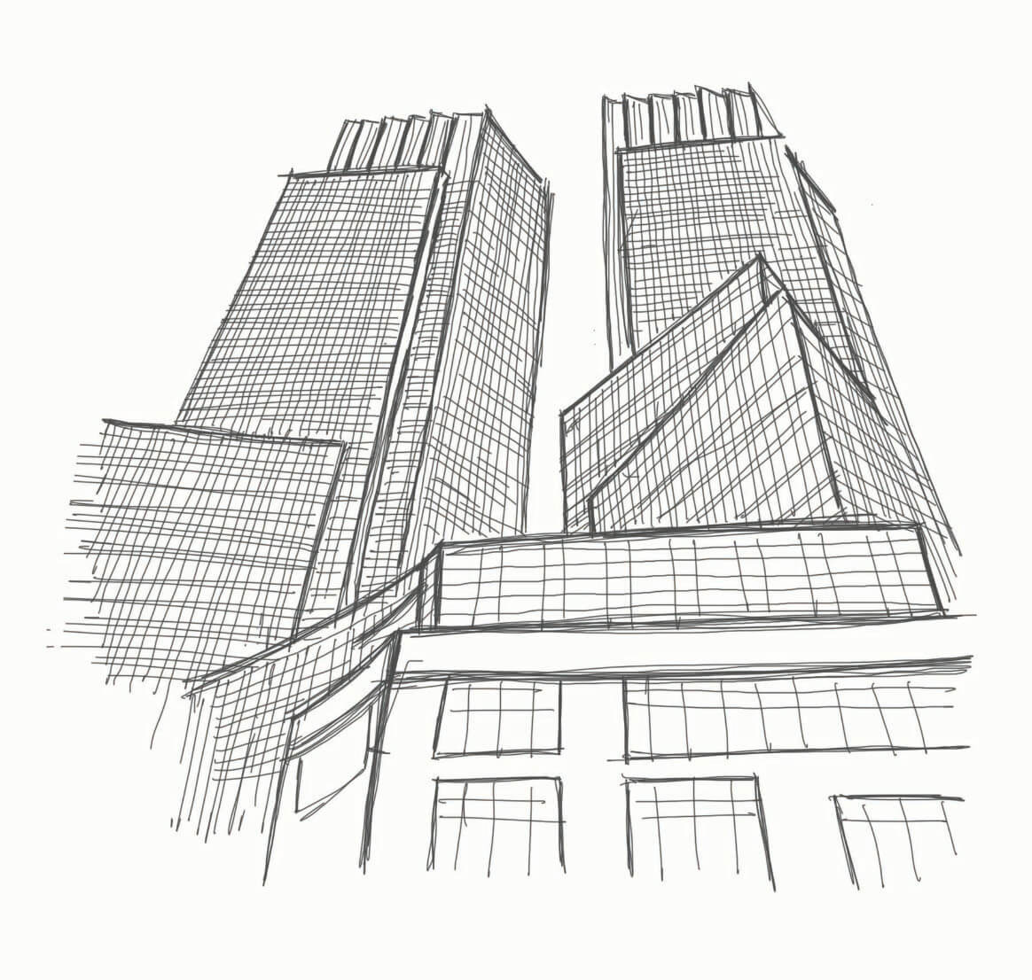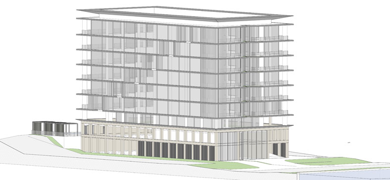 The concept for the lower podium facade design is to create a contrasting composition with the juxtaposition of the old and the new reflected in the stone clad base material and the sleek metallic elements that repeat in a ghost manner the facade fenestration and repetition.