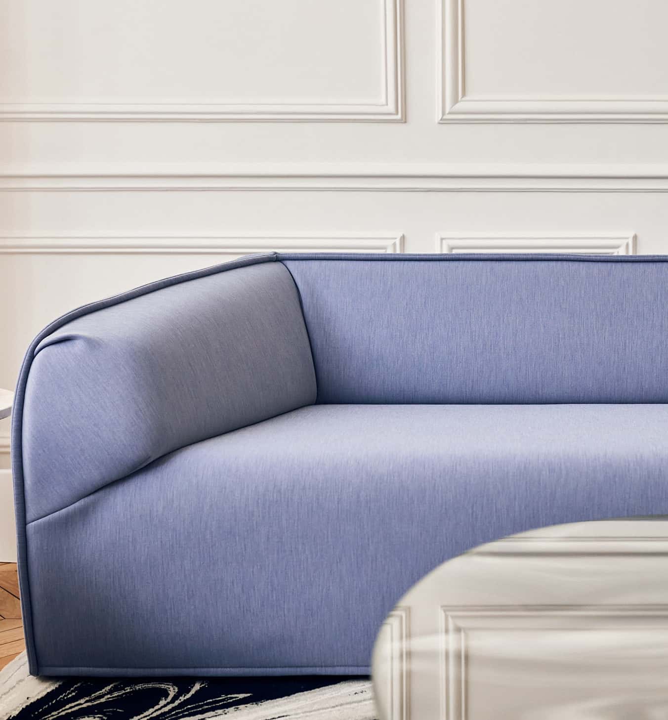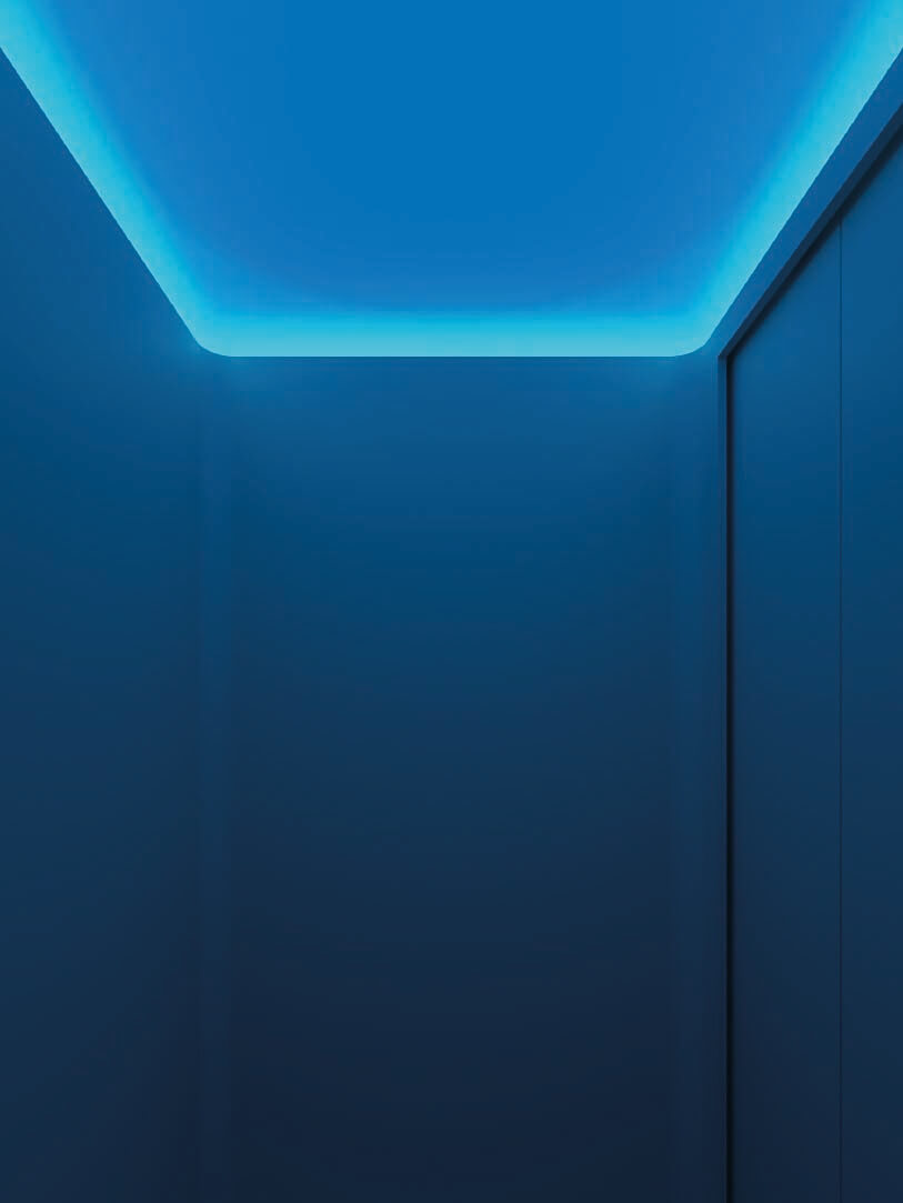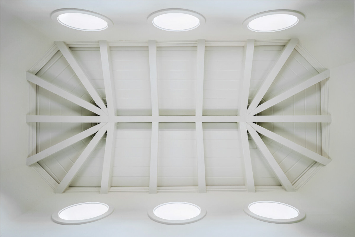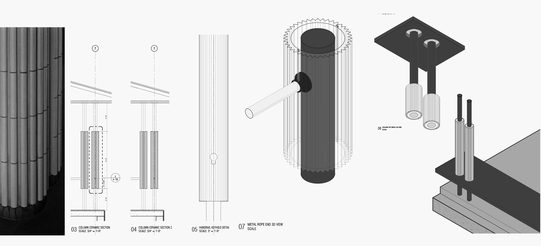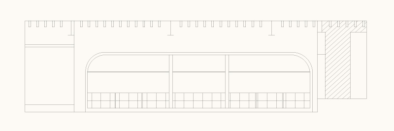 The use of a custom profile column with the navette shape creates a unique visual structure that evokes soft organic elements through its one rounded side and yet also a dynamic and angular nature through its acute side.