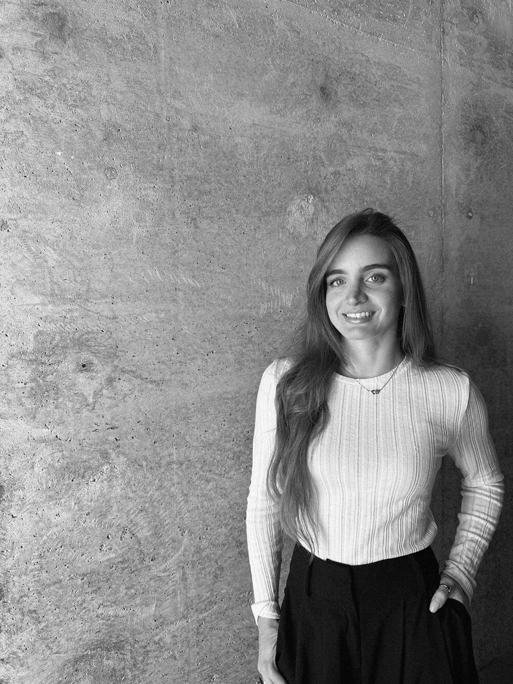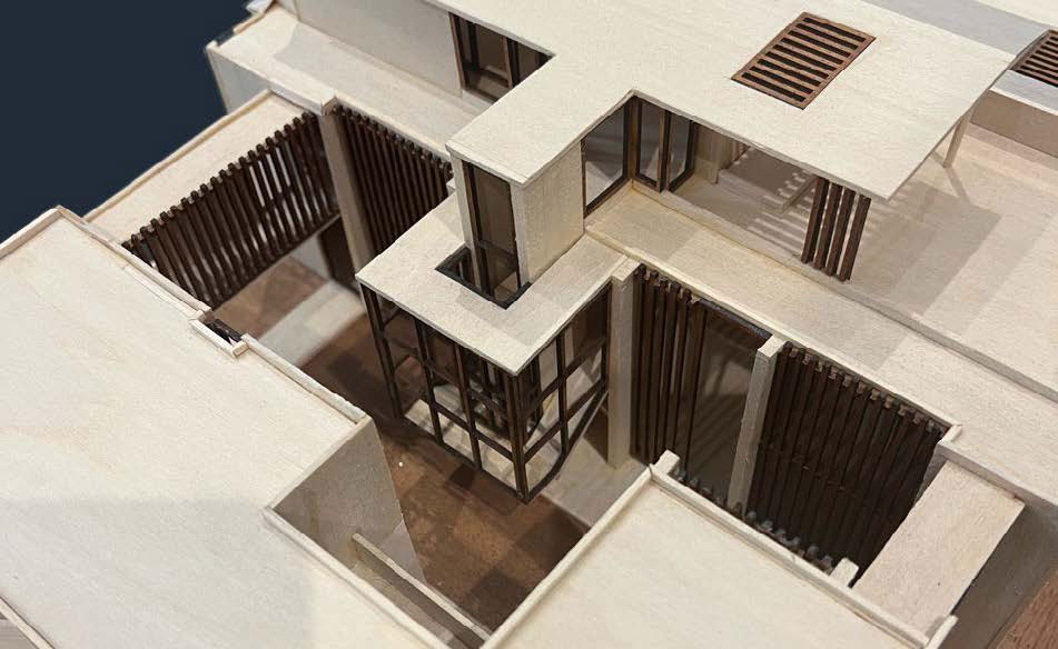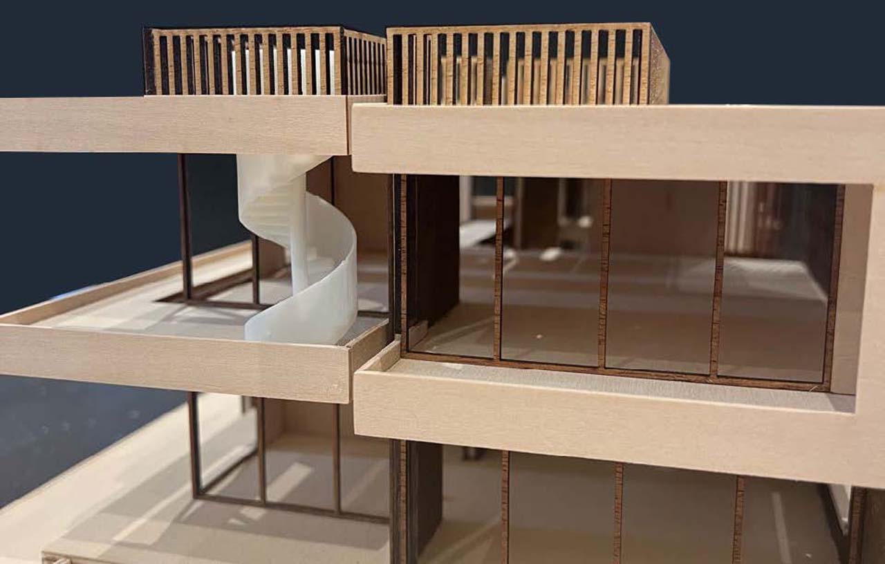 Three inspirational figures in architecture for her are Alvaro Siza, for his purity in Design, Peter Zumthor for his approach to light and materiality, and RCR for their way of integrating Architecture with the surrounding environment.