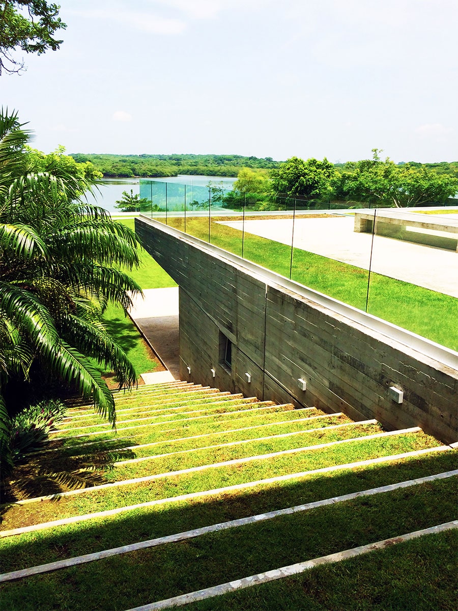 N 19° 10' 30"The Casa del Rio was designed and built as a projection of the clients design acumen, modern taste and love of art. The building tradition and zoning in Mexico is such that no setback is required from the property line which allowed for a fortified structure; as security is a requirement for the client, the strength and presence of the board-formed concrete exterior is as much a necessity as it is part of the Mexican lexicon of building and creates a house that engulfs the lot and gives way to an internal hierarchy of a central courtyard and then a terraced topography that steps down and out several times to the pool house at the final estuary level. By contrast, the interior is nuanced and cultured and designed to exhibit the clients’ art collection and sense of space and materiality. THIRLWALL laid out the interior of the residence as a reflection of the clients’ lifestyle and personality and their presence is very much built into the experience of the design from the public to the private sectors of the home. THIRLWALL’s consistent concept of a rugged exterior of glass and concrete coupled with a luxurious and lavish interior rings true in this project more than any other. Concrete is contrasted with the finest furnishings globally available from Poltrona Frau, BDDW, Ceccotti, Flexform, Tacchini, Glas Italia, and Acerbis with custom integrated paneling in teak wood by Laura Meroni and stone Vaselli travertine panels rendered in 3D from designer photos of the adjacent estuary. The master closet covering over 1500sq’ is Molteni with Porro and antique accents and plumbing throughout is Dornbract, Falper and Antonio Lupi. The house has a 60’ long living room/dining room with an adjacent double height art gallery that is a full 30’ tall with a glass curtain wall system facing the water, custom 12’ tall sliding glass doors allow one to open all outward and inner courtyard facing facades to permit passive cooling of the home in the winter. The home’s structure is based on the premise that all parallel shear walls are cast concrete and all opposing bracing is made up of chrome columns, a rationale that gives the home a unique character. The home under air is.