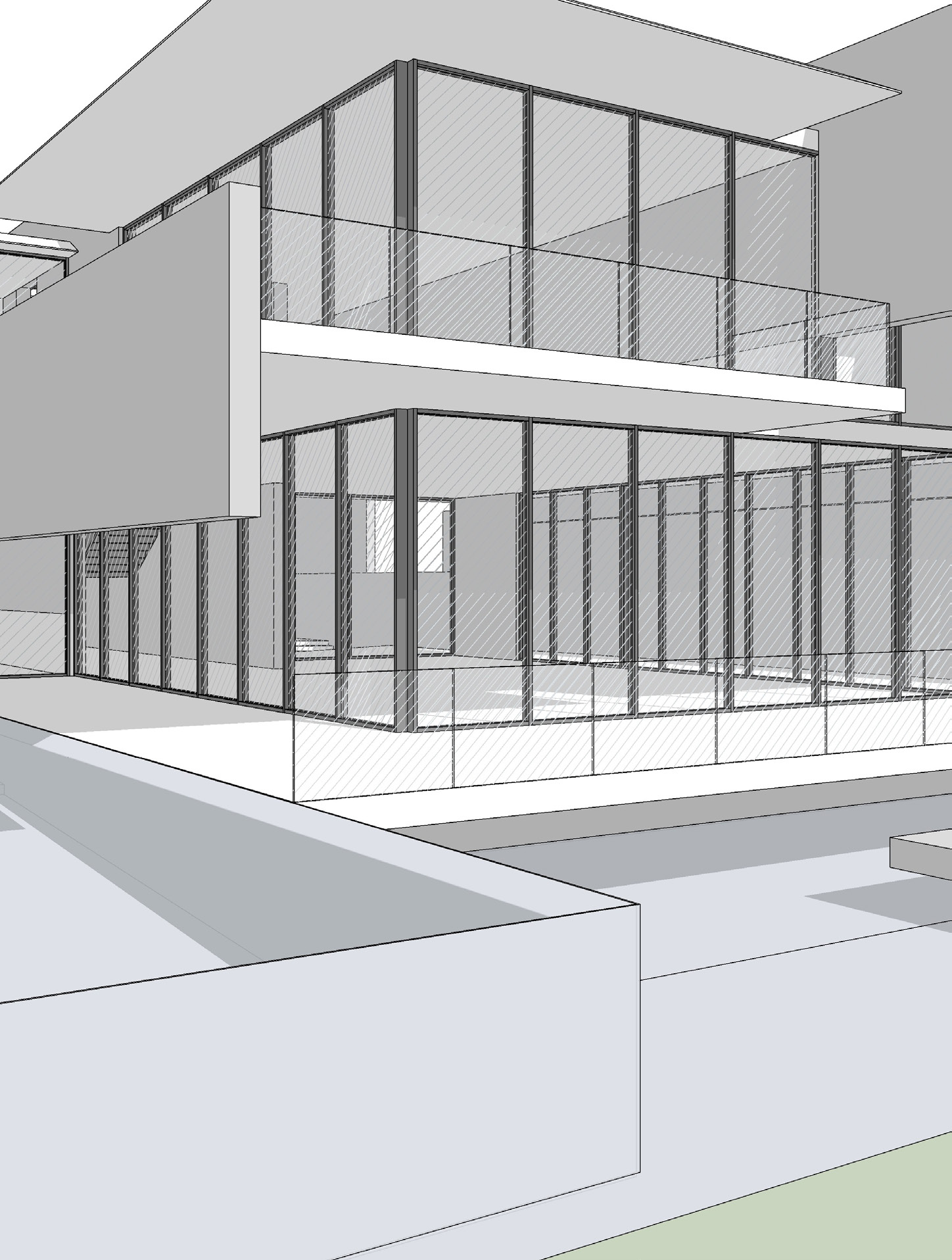 The metallic slab continuation allows for the multiple edges of the building to become thinner as they meet the air and creates a cleaner horizontal dialog that lightens the facade composition in the horizontal.