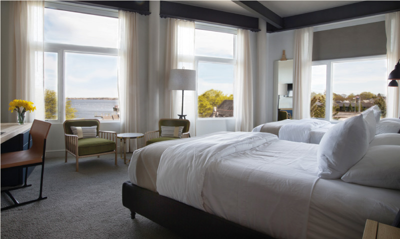 N 44° 06' 03"Complete overhaul, renovation, and interior design for a hotel in the State of Maine. Thirlwall provided, alongside a contemporary approach to hospitality architecture, its expertise in high end furniture procurement and specification, ensuring the project had a unique look and feel due to the use of European furniture and fixtures throughout the property.