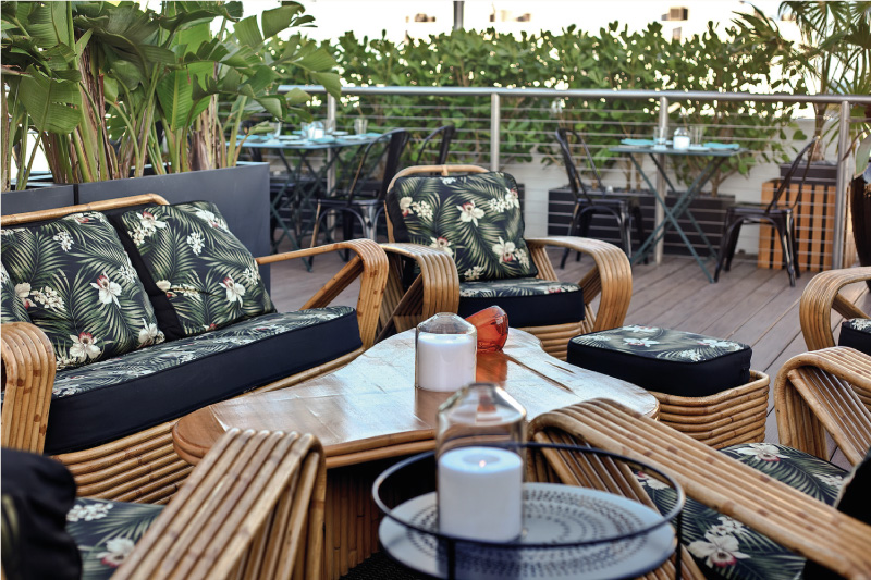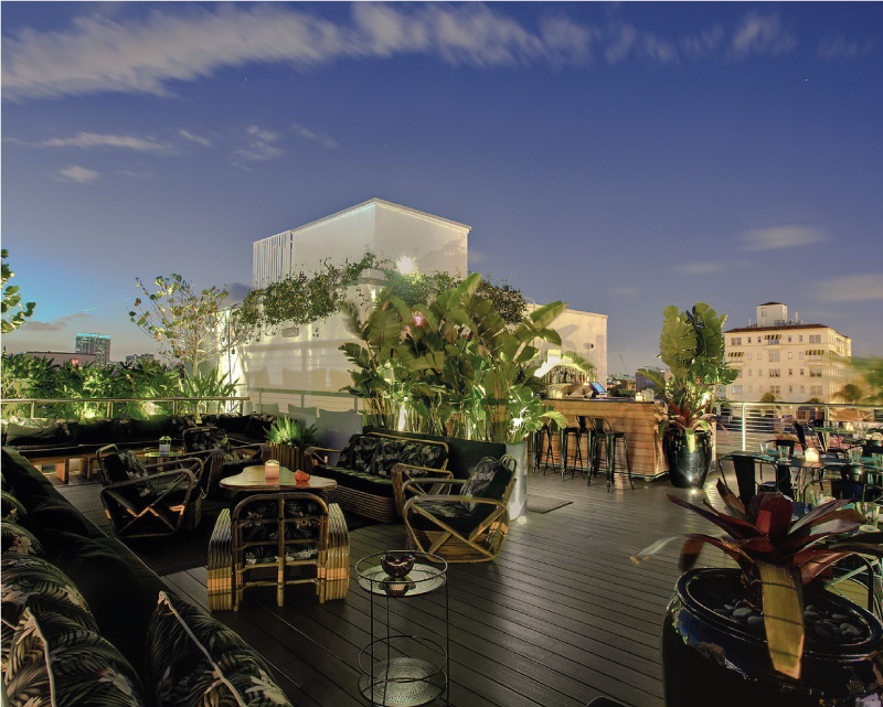 Renovation and redesign of hotel common areas, restaurant, and roof deck areas. Use of modern tropical design elements with a contemporary interpretation for a hospitality project.